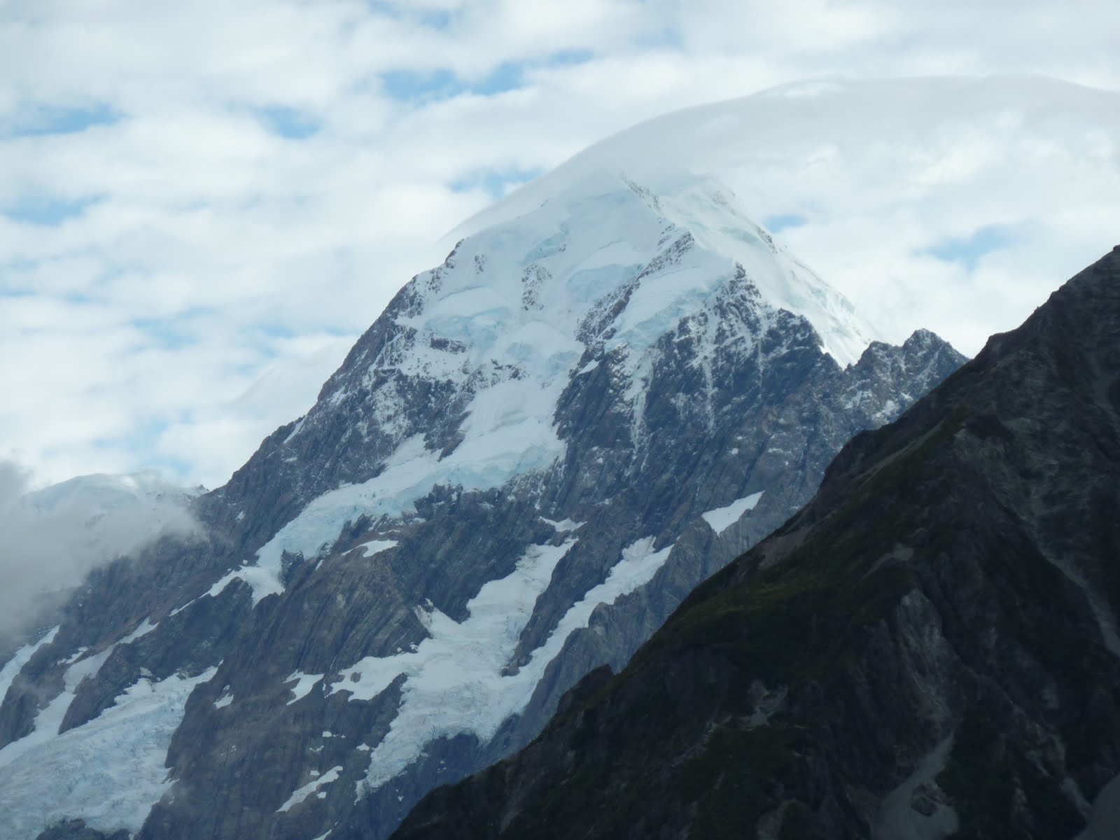 Mount Cook in the early morning light with cloud being formed as air rises to pass over the summit
